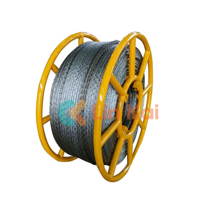 La corde en acier tressée anti-torsion de 16 mm est utilisée pour tirer deux conducteurs regroupés sur une ligne de transmission aérienne. Il peut être utilisé comme corde pilote pour tirer des conducteurs plus gros sur une ligne de transmission 500KV. La corde en acier tressée anti-torsion de 16 mm est composée d'un fil d'acier d'un diamètre de fil unique de 3,5 mm, tressée à partir de 12 brins de fil 1X19W, emballée dans 1200 mm X1100MX 560 mm, ou personnalisée selon les exigences du client, 1000 M/bobine.